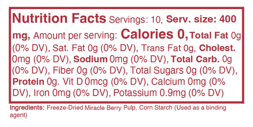 A West African berry that makes common sour & bitter foods taste sweet by temporarily masking your taste buds. Miracle Berries are great for naturally sweetening bland diets without the calorie content associated with sweet foods.